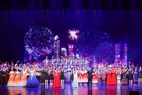 为庆祝新中国成立75周年,进一步铸牢中华民族共同体意识,共同谱写中华民族伟大复兴的新篇章,929日晚,太阳成集团122ccvip举办的“中华民族一家亲 同心共筑中国梦” 庆祝新中国成立75周年文艺汇演在汇学堂举行。校领导李国忠、刘向、夏国恩、梁恩维出席晚会。