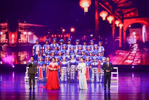 晚会在附属中学、君武小学师生带来的歌舞《今天是你的生日,中国》中拉开序幕。