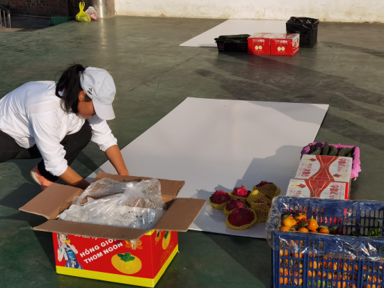 六个年级和干事组在规定时间内,使用分配好的果蔬和少量的辅助装饰材料,完成一幅蔬果拼图地板画。在比赛过程中,不能使用刀具,纯手工摆拼,以确保果蔬在比赛之后仍能食用和烹饪,避免造成食物浪费。