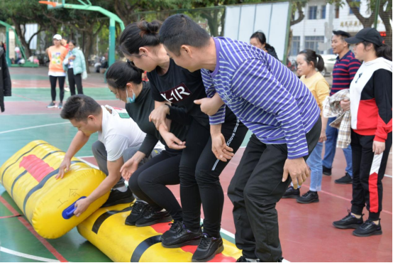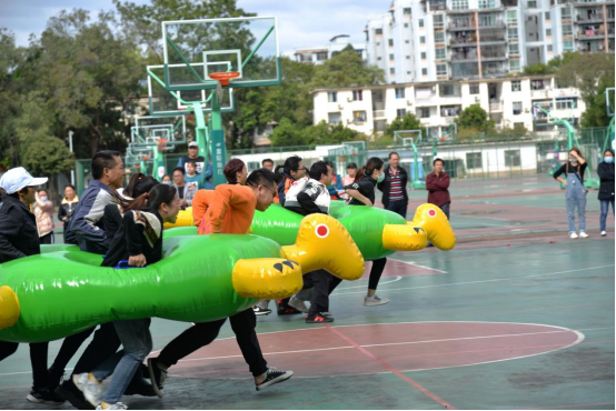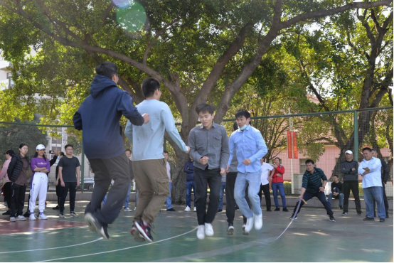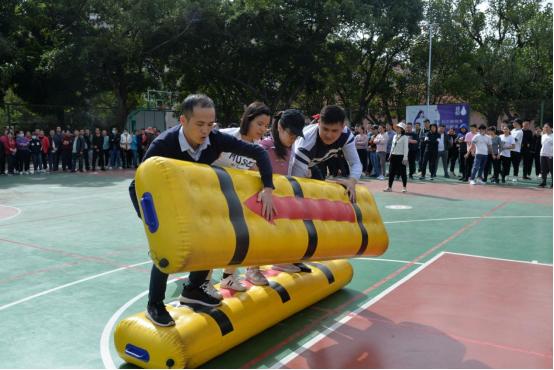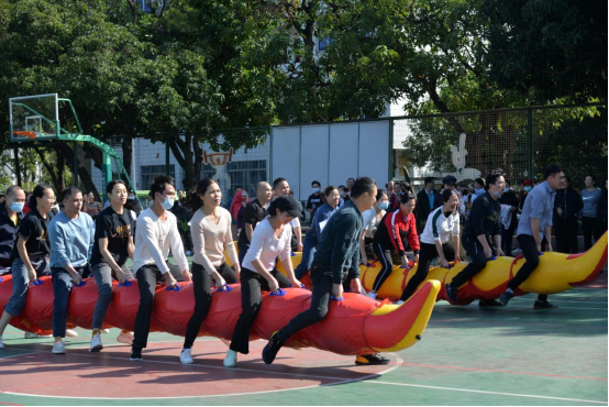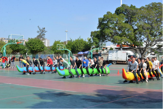 拔河比赛中,选手们双手紧握长绳,使出“洪荒之力”:男女混合气排球比赛里,选手们展现了神乎其神的团队协作能力:击鼓颠球项目中,有规律的撞击声与选手观众们紧张的心跳声相映成趣;龟兔赛跑比赛里,乌龟和兔子道具在参赛人员的操纵下,憨态可掬;跳长绳讲究的是齐心协力,但这对朴诚后勤队员们来说so easy;超级毛毛虫比赛中的选手们动作干净利落,丝毫不拖泥带水;同舟共济是运动员们感触最深的一项项目,每一步、每一息都需要全神贯注;20人×80米折返跑接力比赛里,健儿们披荆斩棘,所向披靡。