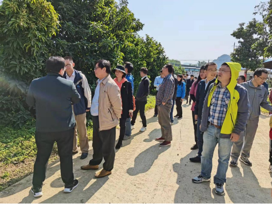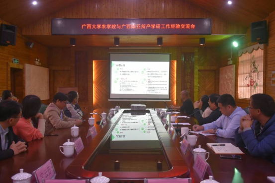 参观完纪念馆后,教师队伍赴广西南亚热带农业科学研究所进行产学研合作交流。在陈海生所长、刘连军副所长的引领下,老师们参观了南亚所的坚果育苗圃、茶园、凉粉草育苗大棚及甘蔗种植基地。座谈会上,陈海生所长对农学院的到来表示欢迎,对农学院长期推荐优秀毕业生到南亚所工作表示感谢,对与农学院加深在产学研方面的进一步合作表示期待。同时表示,南亚所在澳洲坚果等种质资源收集、应用技术推广服务方面取得了大量成效,但是如何利用分子育种技术,从收集的资源中选育优良品种,进行性状的分子定位,以及南亚热带作物病虫害防治等方面还需要农学院相关专业老师的指导与合作。农学院党委书记张国宏、常务副院长何龙飞、分工会主席王邕副院长、马仲辉副院长及吴海燕副院长均表示与南亚所在人才培养、科学研究、服务社会等方面合作空间巨大,接下来要加强交流、对接,把合作事宜落到实处。在南亚所工作的校友们也纷纷对学院的培养及提供了进一步深造的平台表示感谢,期待有更多的师弟师妹们来到南亚所。