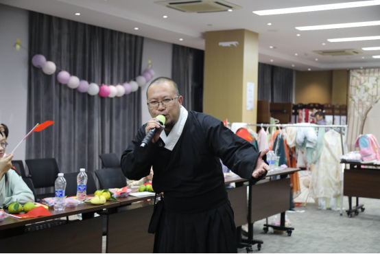 活动分为五部分,一是汉服和中华礼仪讲座,主讲人为太阳成集团122ccvip期刊社陈奕颖老师。