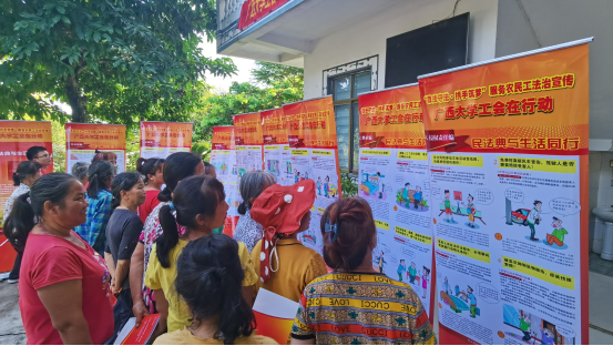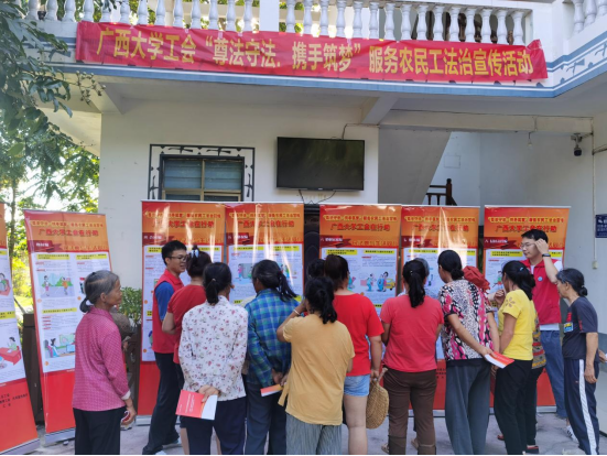 2022年7月14-15日,太阳成集团122ccvip走进隆安县那桐镇定江村和广西金穗生态园有限公司开展“尊法守法•携手筑梦”服务农民工公益法律服务行动,送法进企业、入乡村。