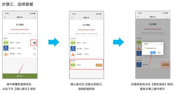 三、生日蛋糕店的选定方式:以分工会为单位(党群、机关分工会以工会小组为单位),会员须登录智慧工会平台就提供的三家蛋糕券平台进行自主选择(每位会员限选一家),选定时间为3月24日—29日,届时系统将自动关闭。具体操作步骤如下: