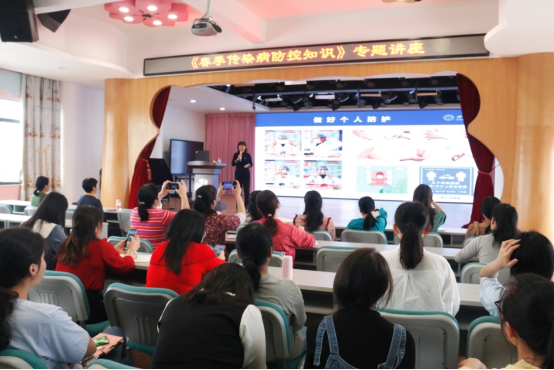 讲座包含了以下几个知识点:为什么春季传染性疾病多发、春季校园常见传染病、春季传染病的预防措施。姚宁院长详细讲解了甲型流感、诺如病毒胃肠炎、手足口病等常见春季传染病。号召家庭学校共同筑牢健康防线,通过从源头抓起管控传染源切断传播途径保护易感人群等方法进行防控春季传染病。她同时强调,在学校落实常态化防控,强化“多病共防”的同时,家庭也应配合共同筑牢健康防线,除了督促孩子养成良好的个人卫生习惯、经常开窗通风保持室内空气流通等,还应带孩子多参加户外活动增强抵抗力,每日关注孩子健康状况发现学生有发热、咳嗽、流鼻涕、红斑、皮疹等疑似传染病症状,老师要立即告知家长带孩子到医院就诊,自觉接受检查和治疗,不带病上课。确保做到早发现、早报告、早治疗、早隔离。